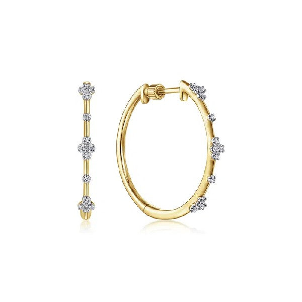 14K Yellow Gold Diamond Flower Station Hoop Earrings
