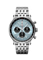 One Navitimer B01 Chronograph Watch. The Case Is 43Mm In Stainless Steel. It Has An Automatic Movement With An Ice Blue Dial And Bidirectional Slide Rule Bezel. The Watch Comes On A Stainless Steel Bracelet With A Deployment Clasp