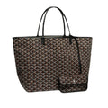 This authentic GOYARD Goyardine Saint Louis GM in black is crafted of coated canvas with the classic Goyard chevron monogram print in black. The bag features black leather strap handles and trim. The top is open to a spacious natural linen interior.