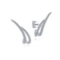 14K White Gold Diamond Curved Double Bar Diamond Climber Earrings - FINAL SALE