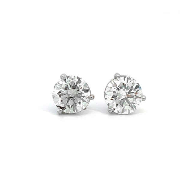14K White Gold 3-prong Martini Natural Diamond Stud Earrings 2.58cttw