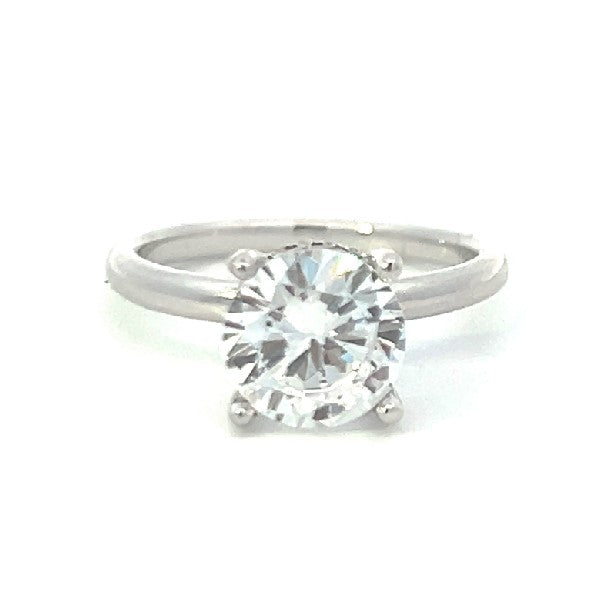 14K White Gold Round Solitaire Engagement Ring With Hidden Diamond Halo