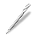 The barrel of this Faber Castell Ambition ballpoint pen is made of matte finished stainless steel. End cap and tip made of highly polished chromed metal. It has a spring-loaded metal clip and a twist mechanism. Comes with black ballpoint ink refill with a broad tip.