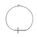 A minimalist cross bracelet in reclaimed sterling silver and artisan handcrafted.