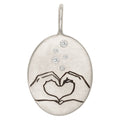 HEATHER B MOORE Silver Heart Hands Oval Charm With Diamonds