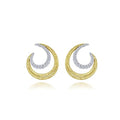 14K white gold diamond crescent is snugly surrounded by twisted 14k yellow gold crescent moon in these diamond stud earrings. 0.36cttw.
