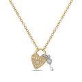 14k yellow gold diamond heart charm with a 14k white gold diamond key charm necklace. 0.08cttw.