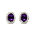 14K White Gold Oval Amethyst and Diamond Halo Stud Earrings