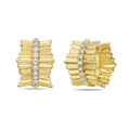 14k yellow gold textured huggie earrings with diamonds. 0.21cttw.