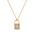 14K yellow gold diamond Pad lock pendant necklace with 0.12cttw of diamonds.