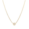 14k yellow gold necklace with one brilliant cut round diamoind in a double bezel setting. 0.43cttw 18"