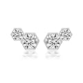 18K white gold diamond 2 stone stud earrings with round diamonds 1.38cttw in a hexagon shaped bezel setting.