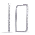 18K white gold rectangular medium size hoops featuring round cut white diamonds 1.26cttw