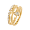 18k yellow gold ring with a pear shaped yellow diamond and sparkling white diamonds. 0.47cttw.
