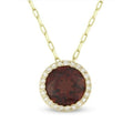 14K Yellow Gold Garnet and Diamond Halo Necklace