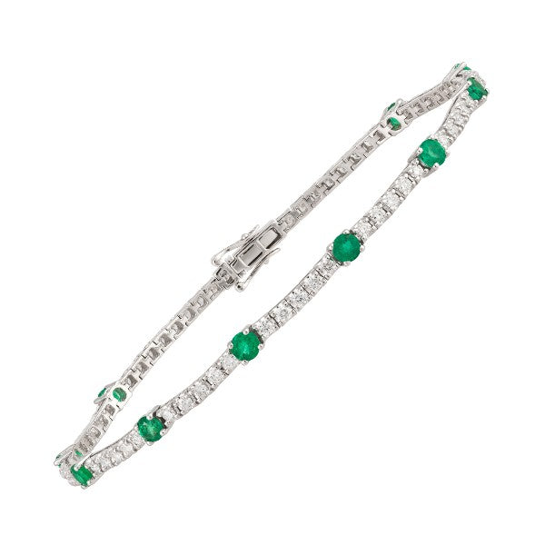 18K White Gold Emerald And Diamond Tennis Bracelet