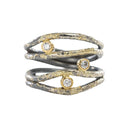 KATE MALLER Oxidized Silver and 18K Yellow Gold Diamond & Dust Orbit Ring