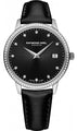 Entirely made of steel, this 34 mm stainless steel quartz watch offers a black dial, 11 sparkling diamonds as hour markers, and boasts a date window at 3 o’clock on a black leather strap. Timeless and elegant, this Toccata proves beauty is not always fleeting.