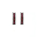 14K White Gold Ruby and Diamond Hoop Earrings