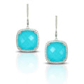 18K White Gold Earrings With Diamond Halo and Clear Quartz Over Turquoise