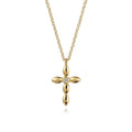 14K yellow gold puff cross necklace with a 0.02cttw diamond on a 17.5" adjustable cable chain.