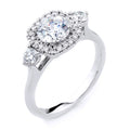 Load image into Gallery viewer, 3-Stone Diamond Halo Engagement Ring