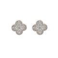 14K white gold clover earrings with pave set diamonds 0.35cttw