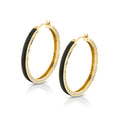14K yellow gold hoop earrings with a black enamel inlay. The sides are accented with 1.26cttw of pave diamonds. From the Michael M Chroma Gold collection,