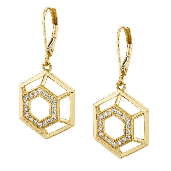 Inspired by the beauty of underlying structure, and light enough for everyday wear, the HEX Truss Dangle Earrings from Michael M are innovative and fun. Featuring a hex halo at their core, and dimensional structure inspired by the architectural truss, these are a statement in the making. 0.36cttw