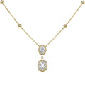 18K Yellow Gold Double Drop Halo Necklace with Pear and Emerald Cut Diamonds