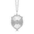 18K white shield pendant outlined with diamonds and a center cluster. 0.57cttw. Chain sold separately