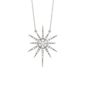 18K white gold starburst necklace featuring round cut diamonds 0.22cttw