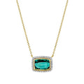 18K yellow gold necklace with a 2.38ct rectangular cut green tourmaline and 0.17cttw of diamonds on an adjustable 16-18 inch chain.