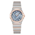 The 28 mm watch is presented with a case and mono-rang bracelet created from stainless steel and 18K Sedna™ Gold, with signature Constellation features including the polished claws, half-moon facets, and a diamond-paved bezel.