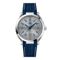 The blue strap is made from structured rubber and includes grey lining and an additional stainless steel link which integrates it to the case. This certified chronometer is powered by the OMEGA Master Chronometer calibre 8900, certified at the industry’s highest standard by the Swiss Federal Institute of Metrology (METAS).