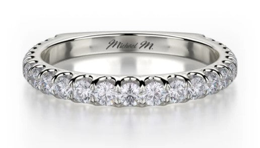 18K White Gold Bezel Set &-Stone Emerand Diamond Band