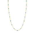 18K yellow gold with 4.29cttw of mixed shaped blue topaz stations on an airy link 16-18" chain.