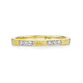 18K yellow gold band with strie detail and diamond stations. 0.15cttw.