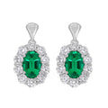 18K white gold earrings with 0.90cttw of oval emeralds and 0.80cttw of diamonds.