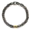 From designer Todd Reed, this oxidized sterling silver link bracelet features a 18K yellow gold link.
