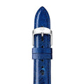 This ostrich midnight blue strap includes a stainless buckle with a signature logo and is easily interchangeable with any 18mm Michele watch.