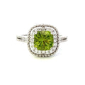 14K White Gold  Cushion Cut Peridot and Diamond Halo Ring