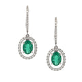 14K white gold drop earrings with 1.61cttw of oval cut green emeralds and 0.37cttw of diamonds
