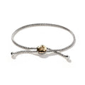 From the Classic Chain collection, this John Hardy bracelet brings a small touch of elegance to your style. A thin classic chain in sterling silver is fitted with a small button station that is set with an 18K yellow gold inlay with a hand-hammered textured surface. Small balls rest at the end of each strand and have also been hammered to streamline the look.