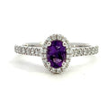 14K white gold ring with a 0.43ct oval amethyst and diamonds 0.22cttw